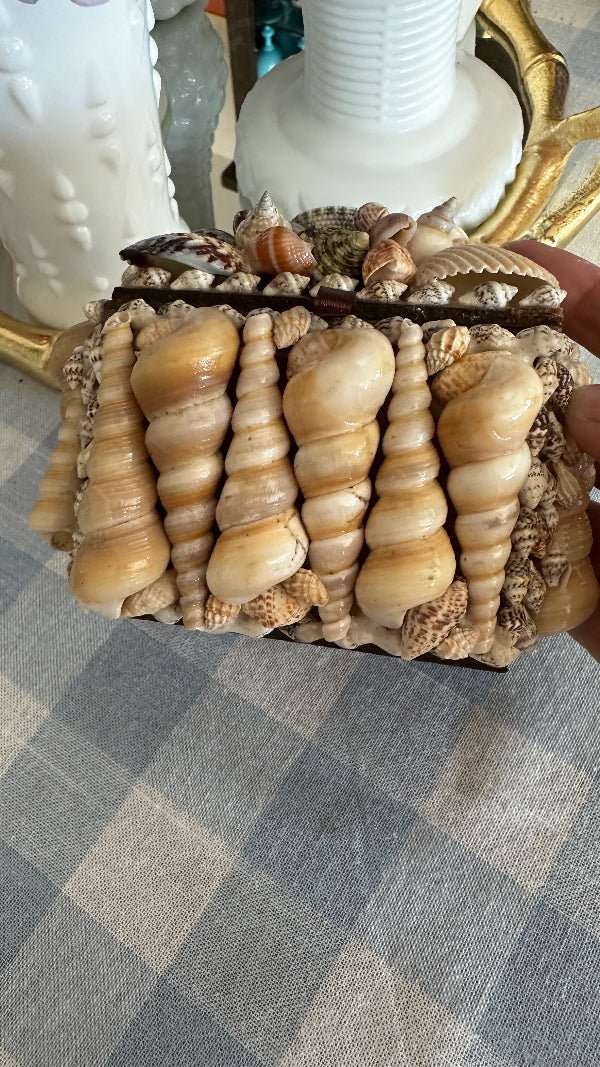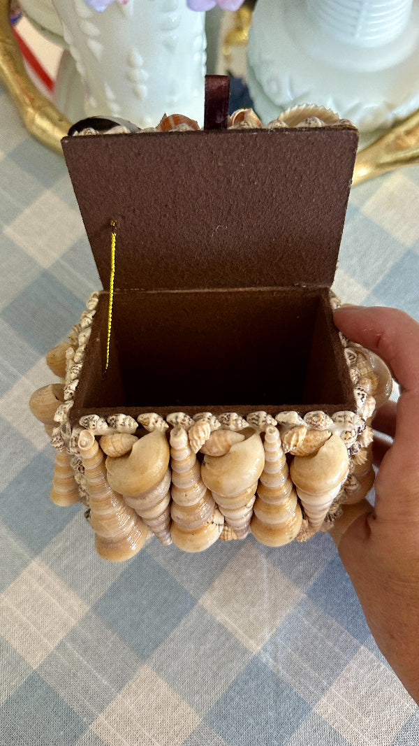 Vintage Seashell Box, Brown Felt Liner, Hinged