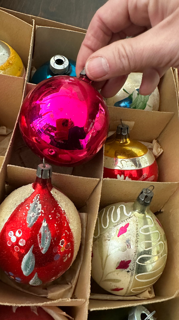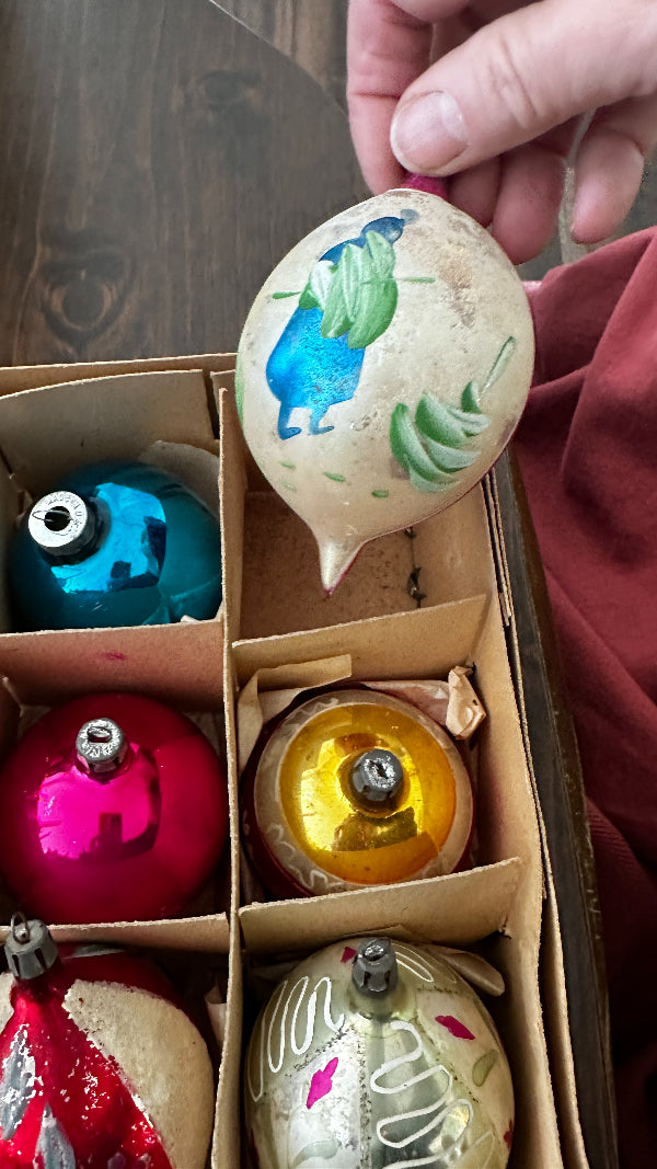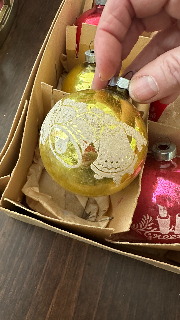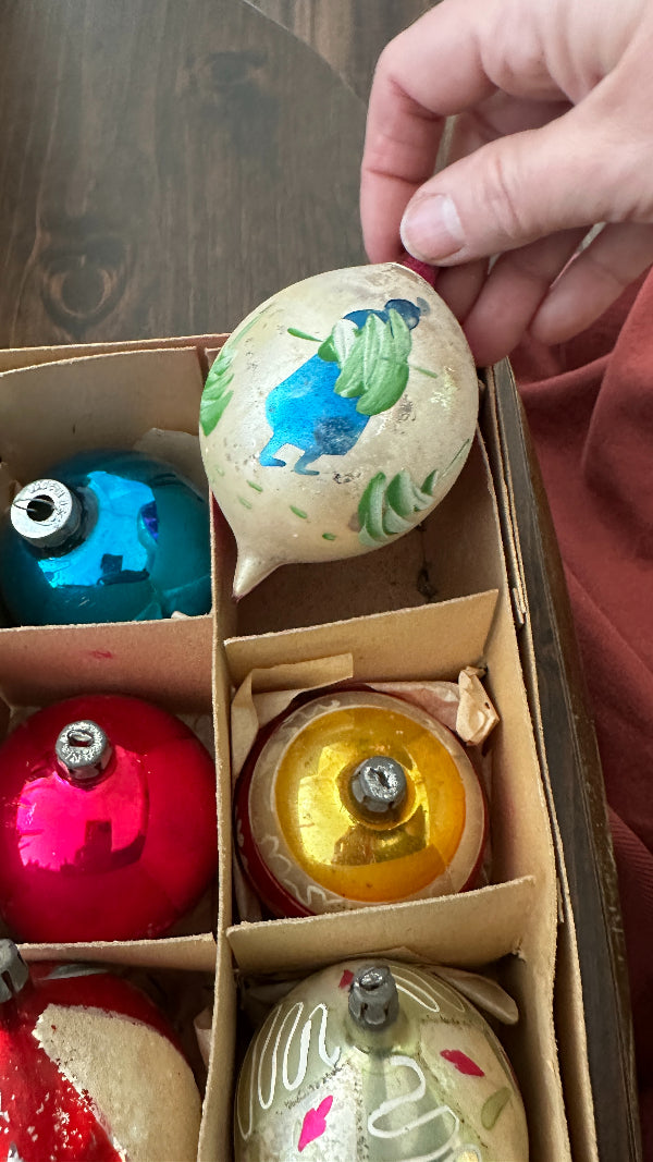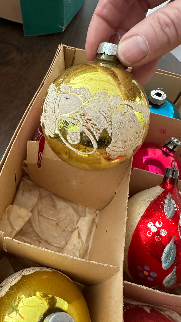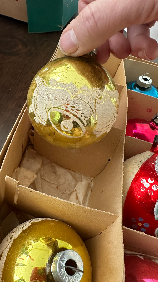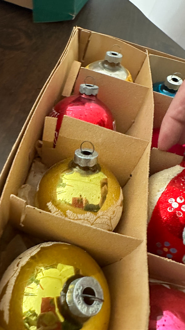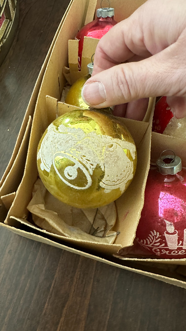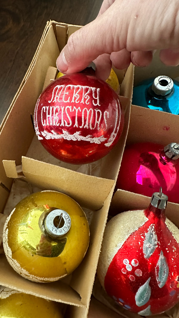 Celebrate the holidays in classic style with our Vintage Shiny Brite Ornaments Set of 12. This charming collection features a delightful mix of Floral, Seasons Greetings, Bells, Striped, and 3 Teardrop designs, alongside 9 Round ornaments, creating a versatile and festive ensemble. Some Shiny Brite and Some Vintage from Poland.