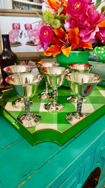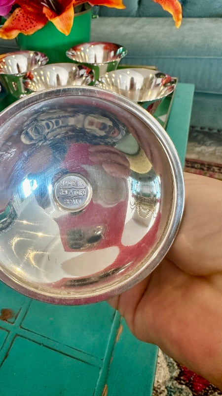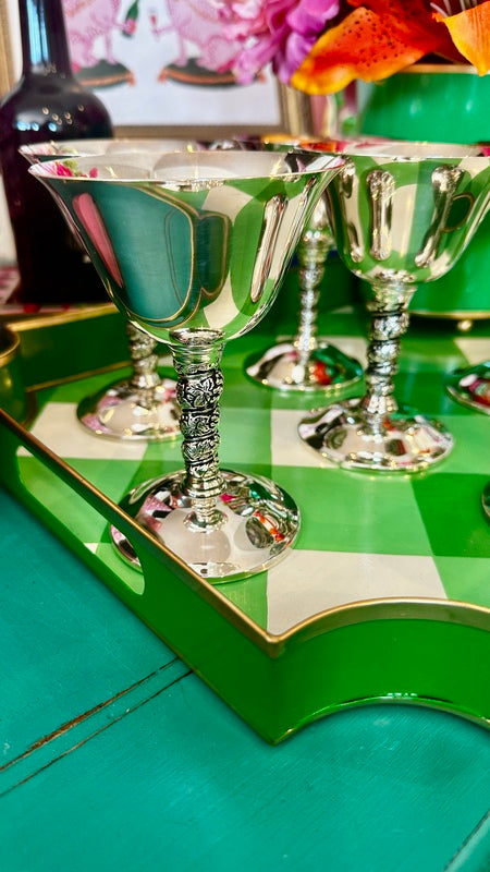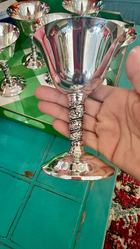 Vintage Silver plate Wine Glasses Spain, Set of 6, Grapevine Detailed Stem