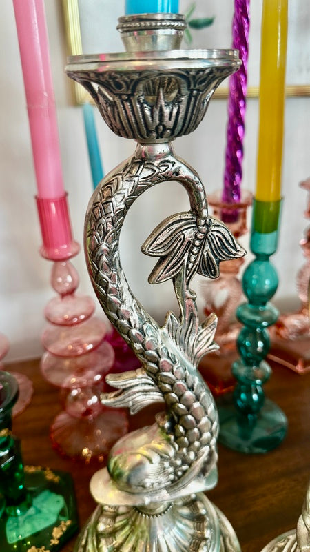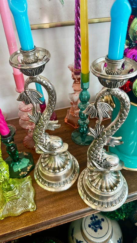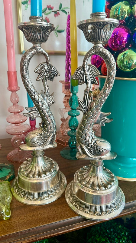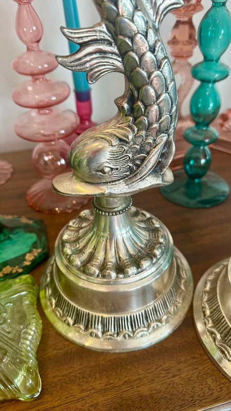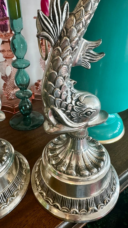 Vintage Silverplate Candle Holders, Koi Fish, Pair