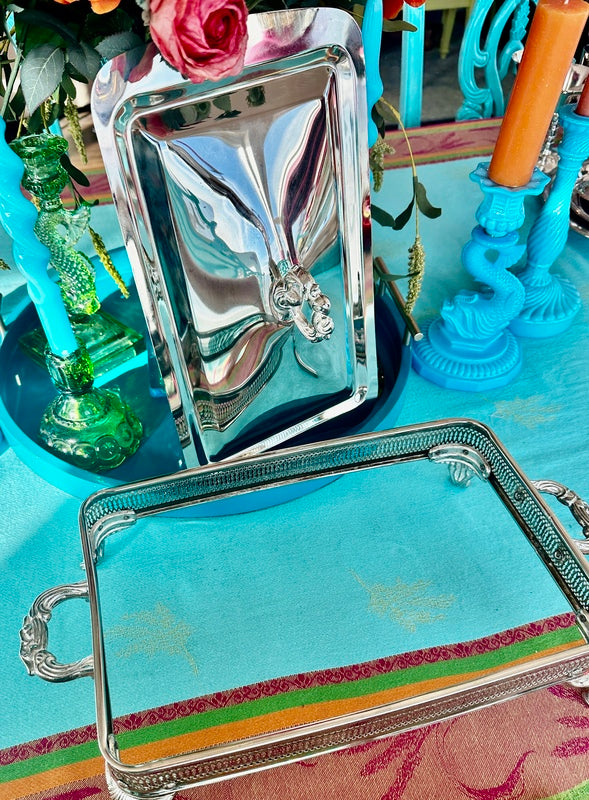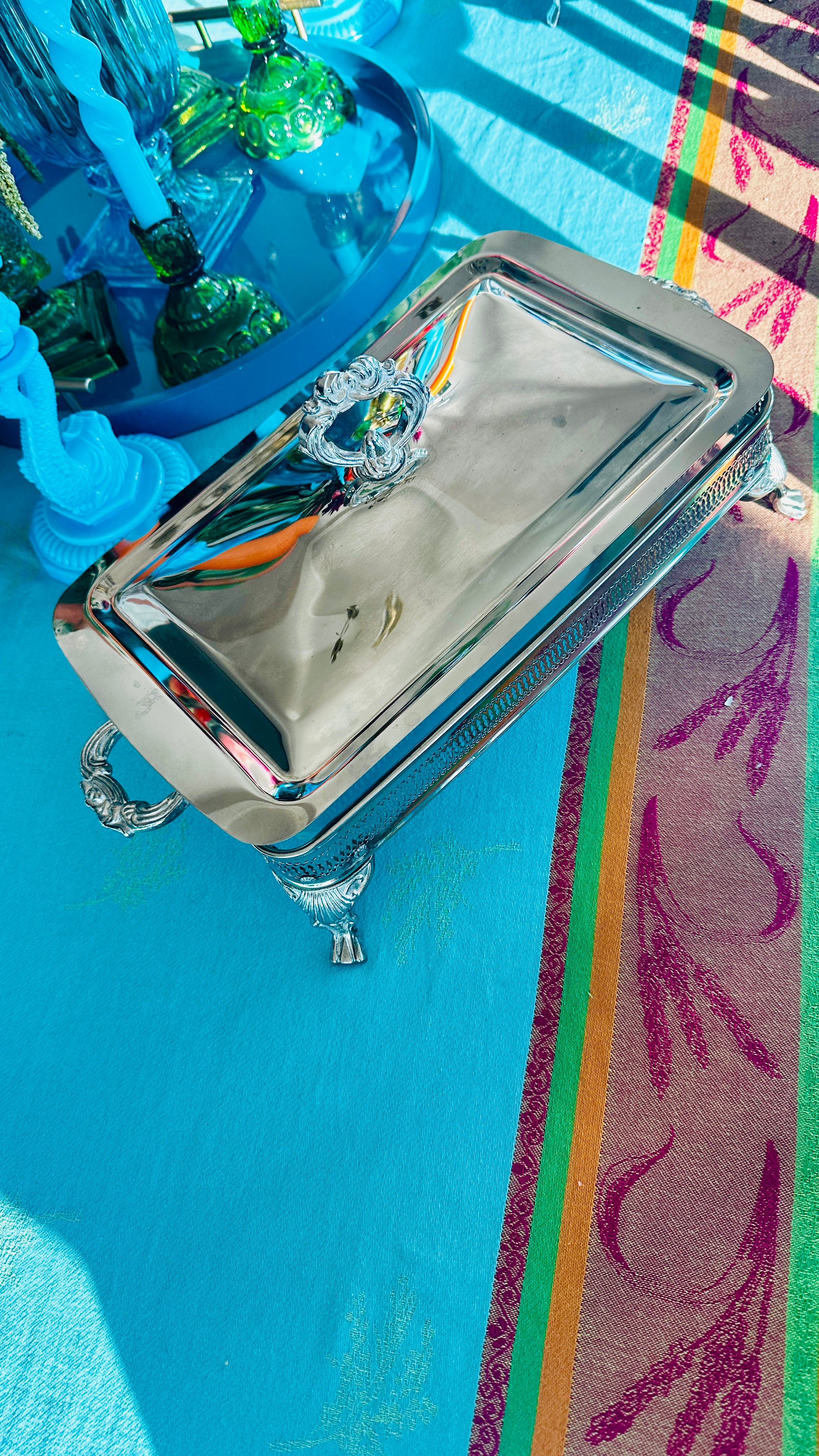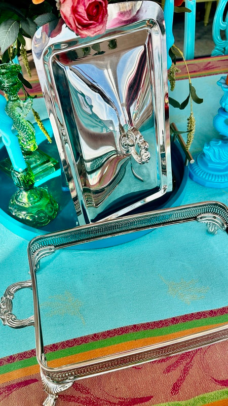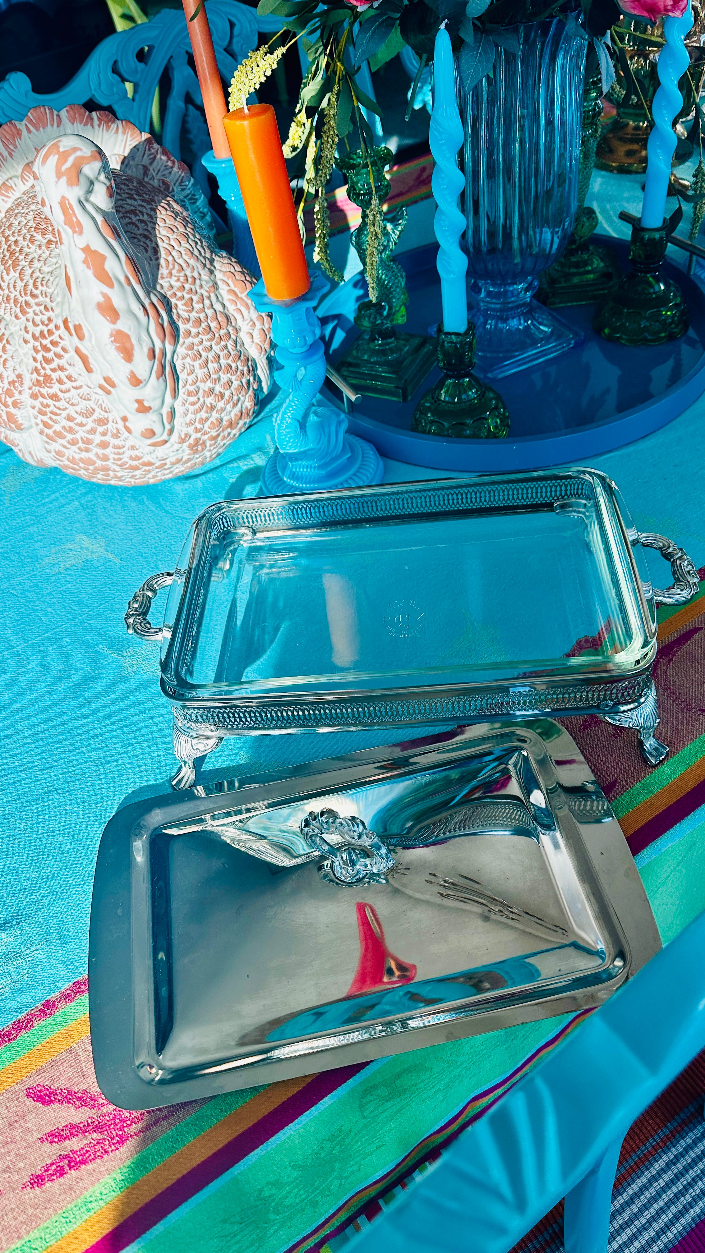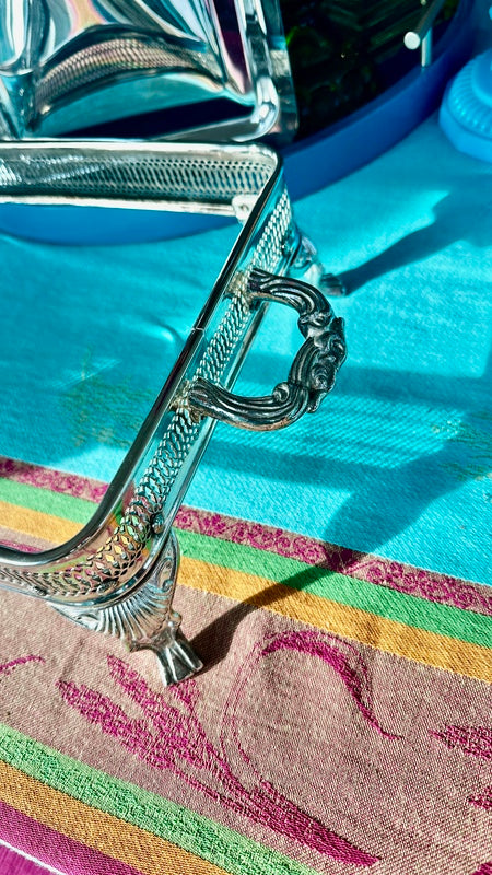 Silver Plate Server, Pyrex Glass Insert, Hong Kong