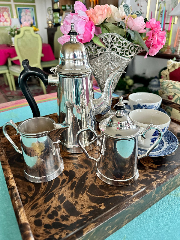 Vintage Silverplate Tea Set, Mid Century Modern, MCM