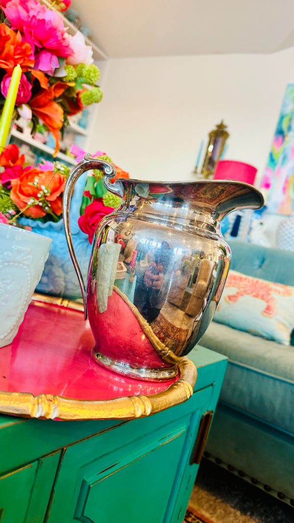 Vintage Silverplate Water Pitcher, Silvercraft, Stamped 1857