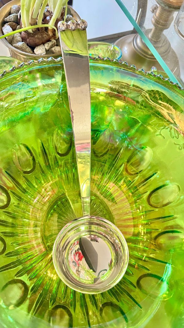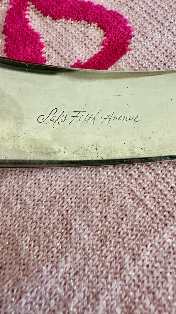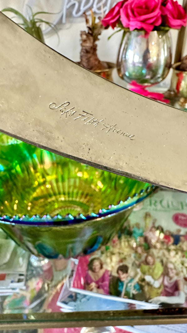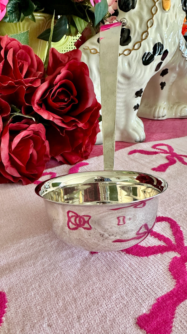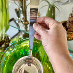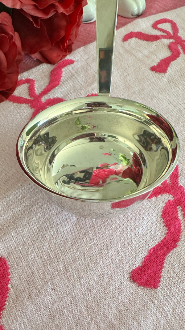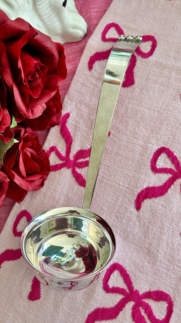 Elegant Vintage Silvertone Ladle from Saks Fifth Avenue, featuring a sleek, timeless design perfect for serving sauces, gravies, or punch. This collectible piece combines practical functionality with refined style, making it a standout addition to any vintage tableware or silverware collection. Ideal for entertaining or displaying as part of a curated vintage set.