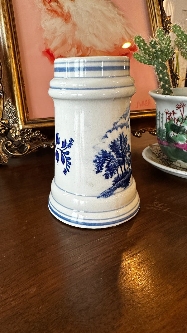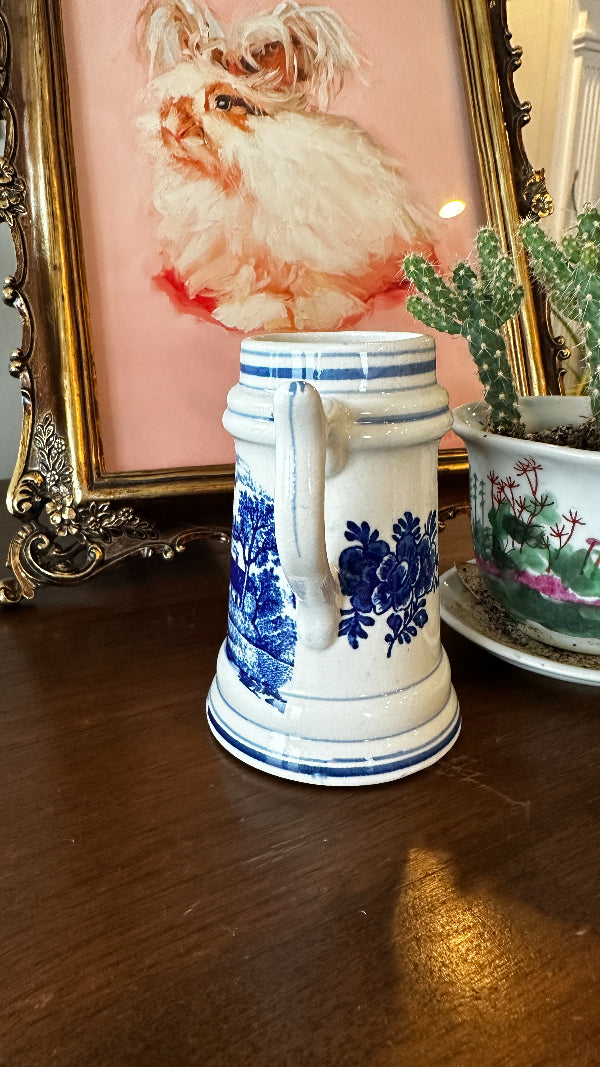 Vintage Small Stein, Blue and White, Delft, Porcelain Windmill