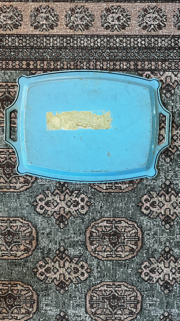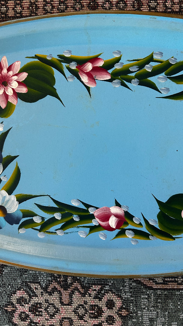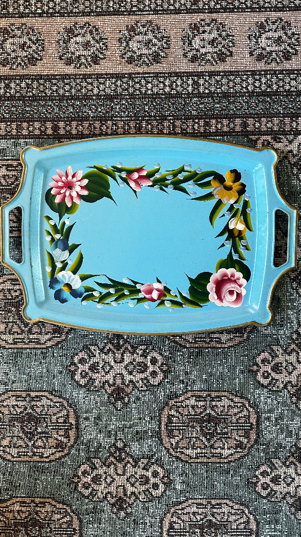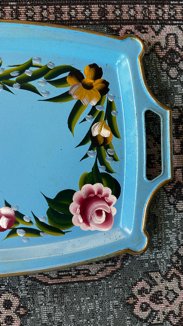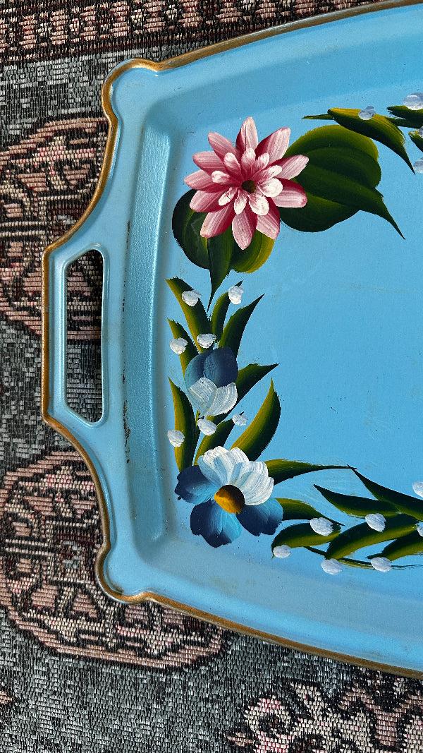 Vintage Tole Tray, Handled, Blue Floral