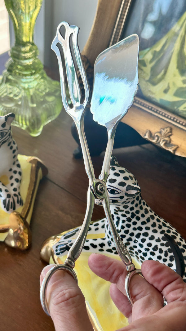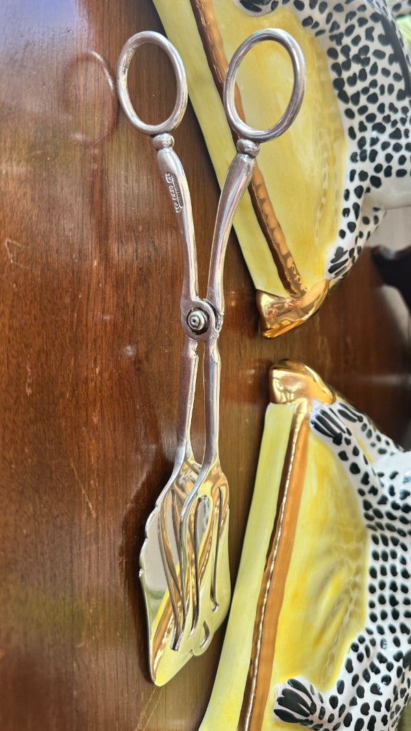 Vintage Tongs, Cake or Pastry, Silverplate EP-Electropated, NS-Nickel Silver Hallmarks