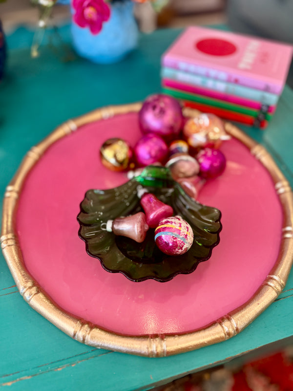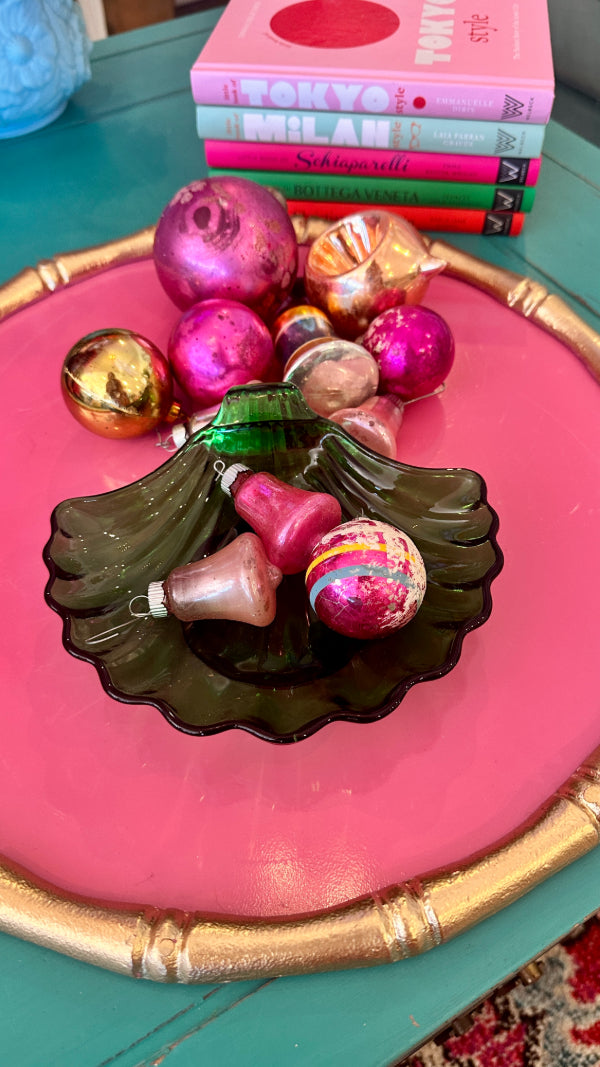 Add a touch of vintage charm to your décor with this Vintage Anchor Hocking Green Glass Trinket Dish, beautifully shaped like a seashell. Crafted from translucent green glass, this delicate dish reflects the timeless quality and craftsmanship Anchor Hocking is known for. Perfect for holding jewelry, coins, or small keepsakes, it’s a functional and decorative piece that adds retro elegance to any vanity, dresser, or tabletop. A classic collectible for lovers of mid-century glassware and nostalgic home accents.