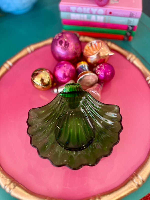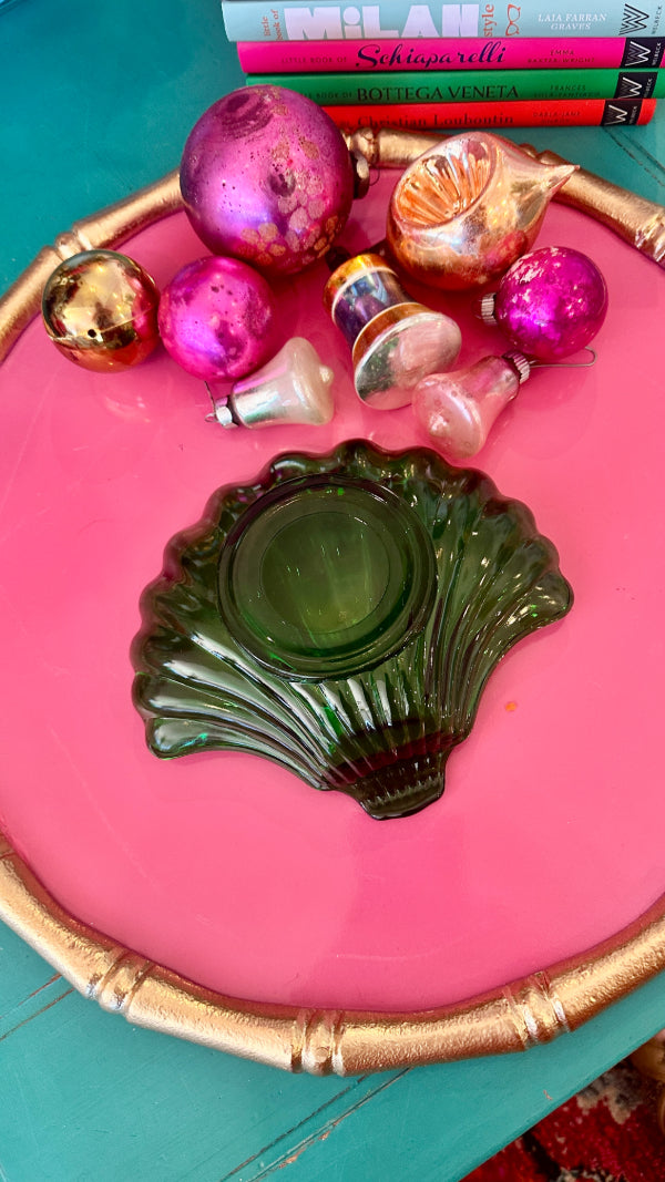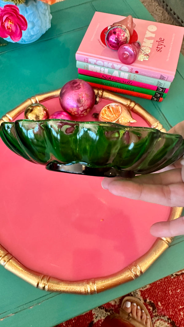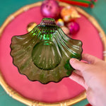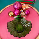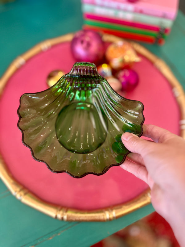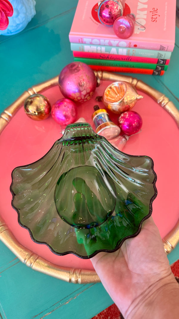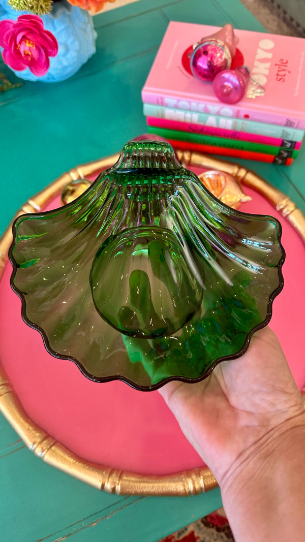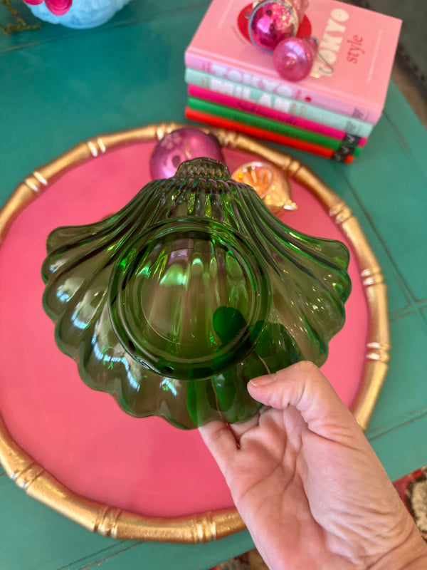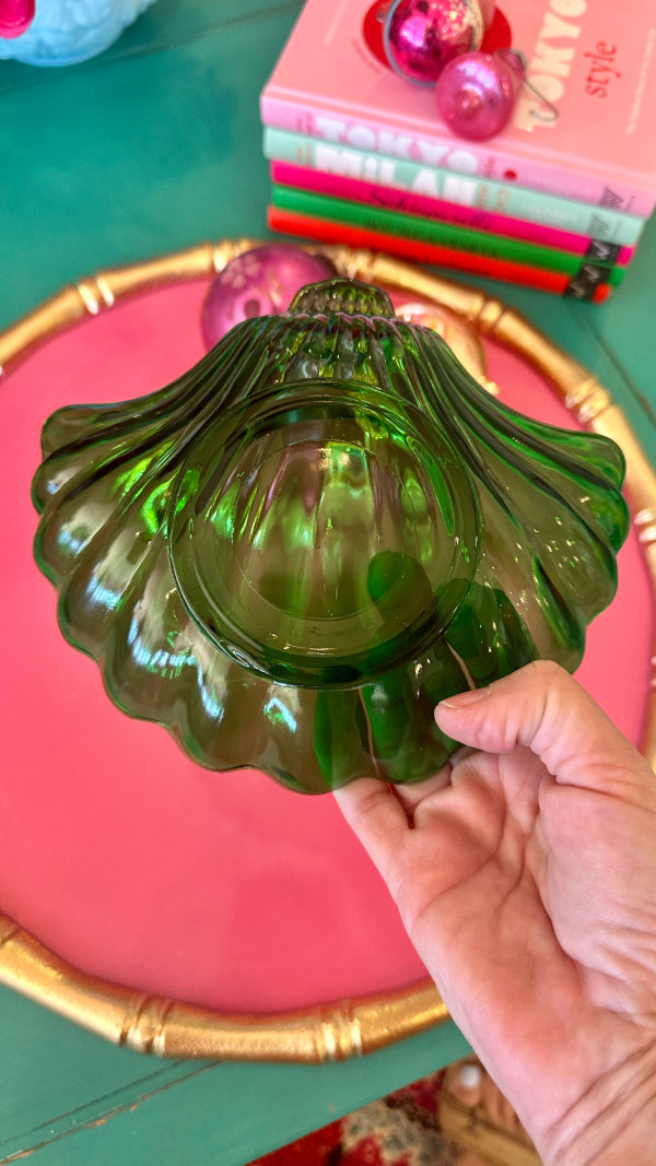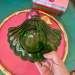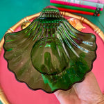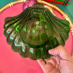 Vintage Trinket Dish, Shell, Green Glass, Anchor Hocking