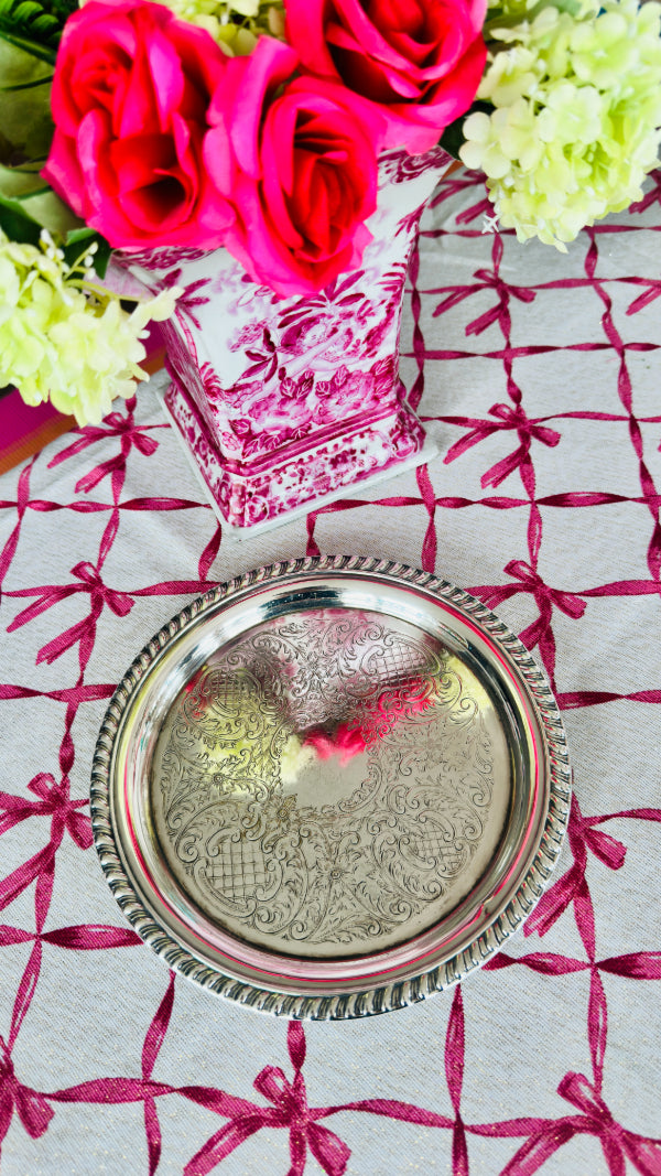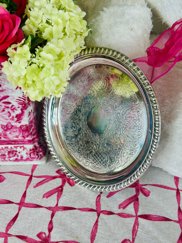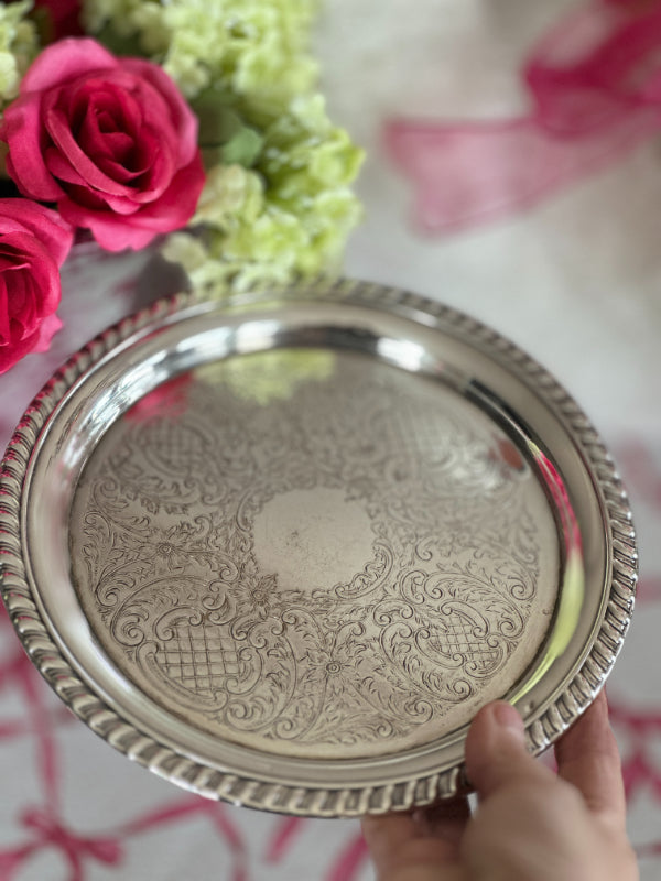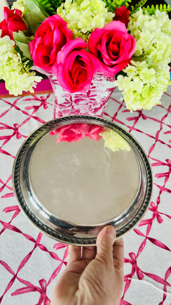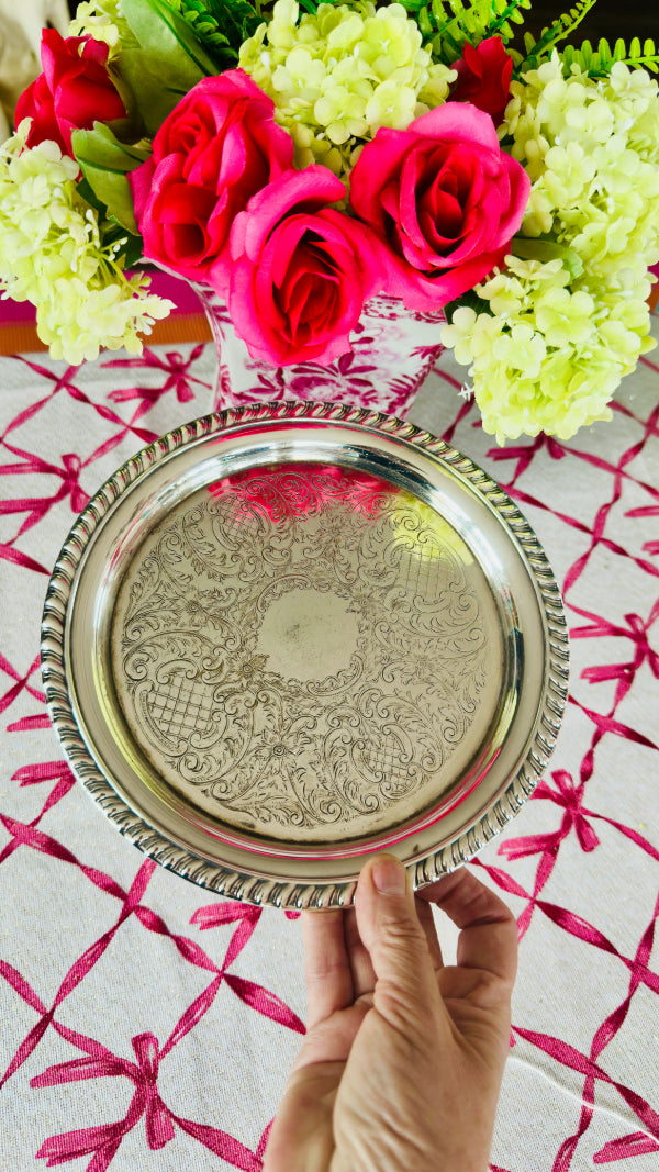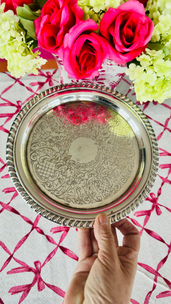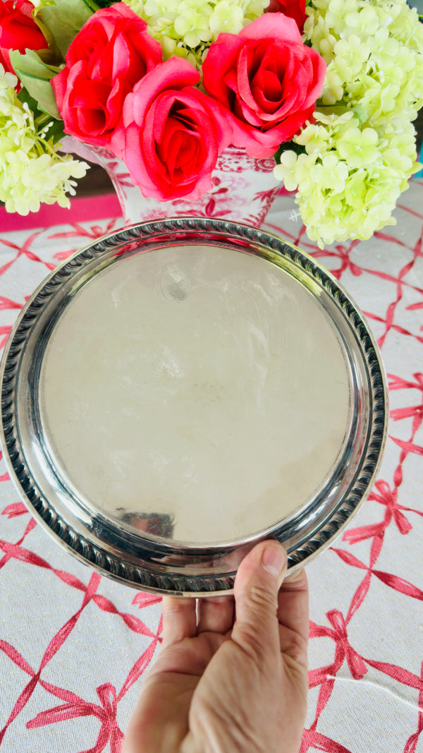 Vintage Trophy Tray, Silverplate, Sheridan, Round, Rope