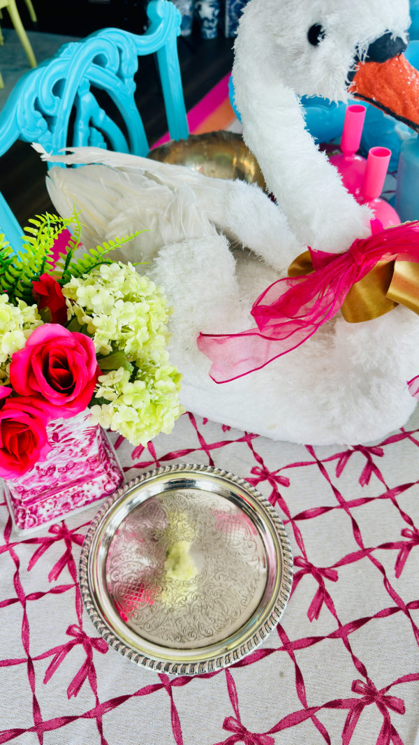 This Vintage Round Trophy Tray by Sheridan is crafted in classic silverplate and features a timeless rope border that adds refined texture and visual appeal. The simple, balanced design highlights Sheridan’s reputation for quality American silverplate, making this tray both functional and decorative.