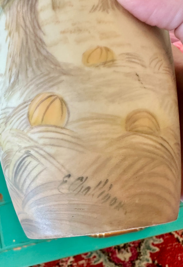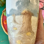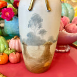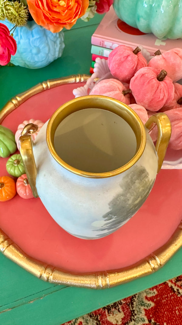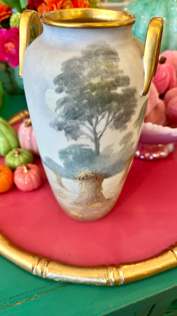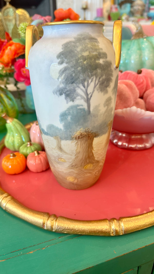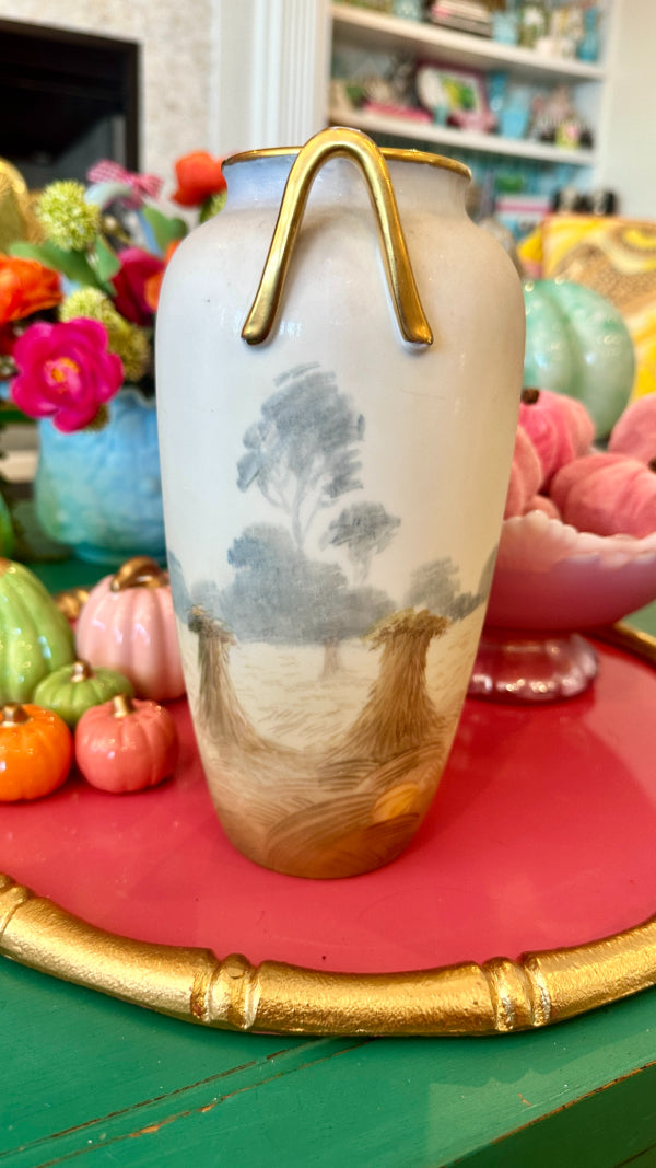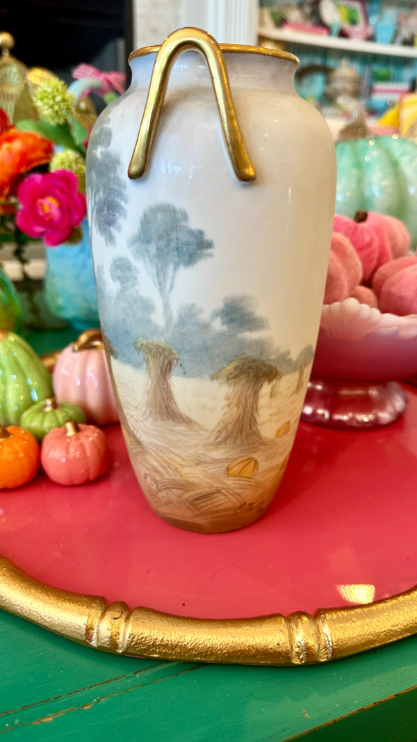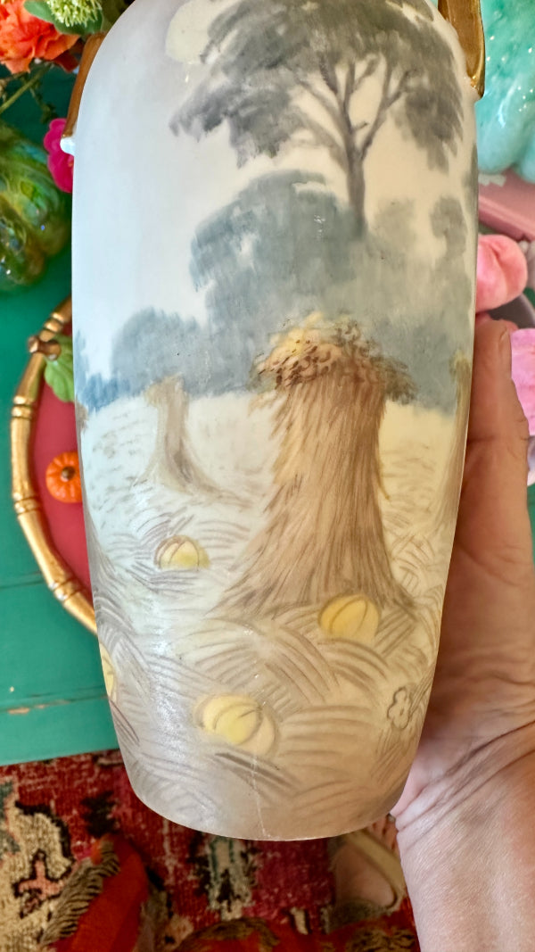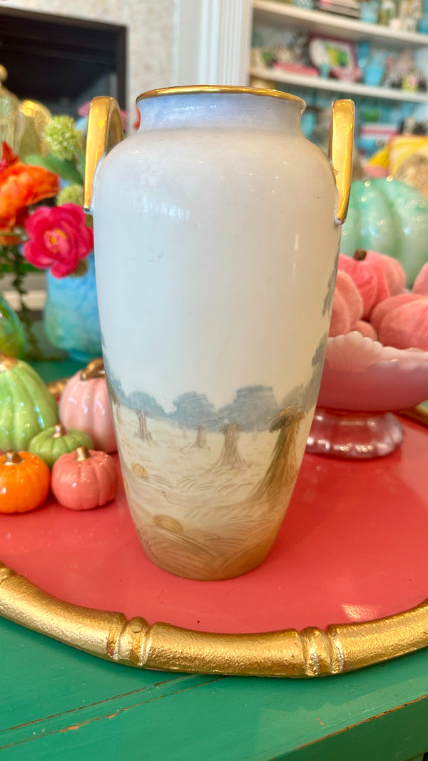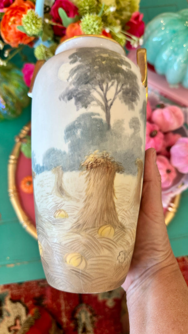 Vintage Vase, Hand Painted, Pickard, Pumpkin Harvest Scene Gold Detail