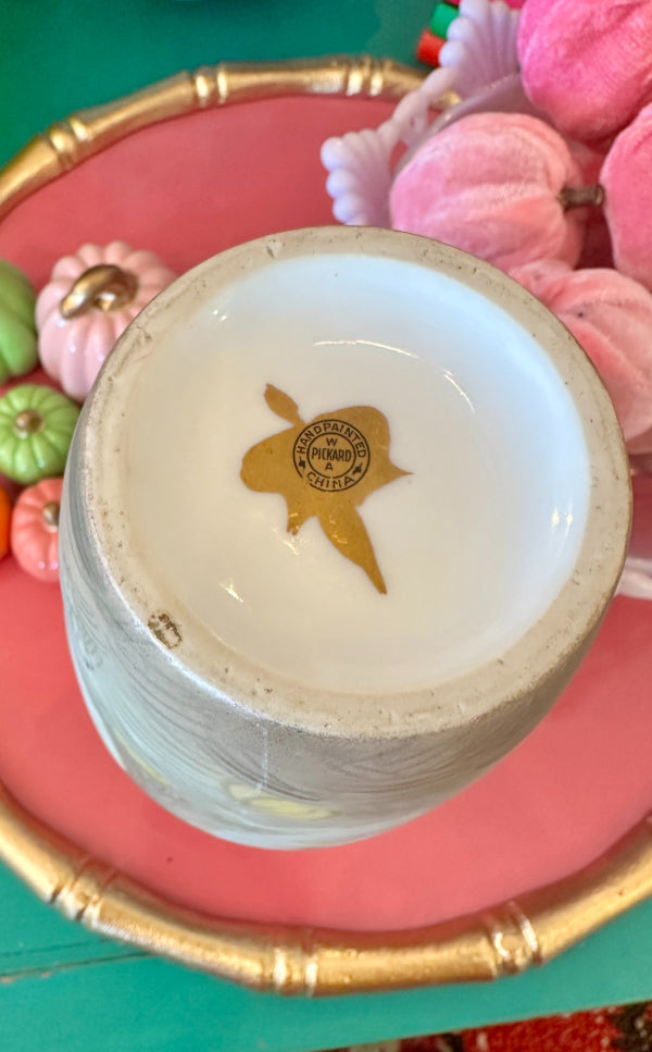Elevate your collection with this exquisite Vintage Pickard Hand-Painted Vase, featuring a stunning Pumpkin Harvest Scene adorned with rich 24K gold detailing. Expertly crafted and signed by the artist, this vase exemplifies Pickard’s renowned artistry and attention to detail. The warm autumn palette and intricate gold trim create a timeless piece that embodies both elegance and tradition. Perfect as a sophisticated accent in any home décor, this vase captures the beauty and craftsmanship that define Pickard China.