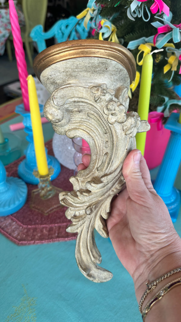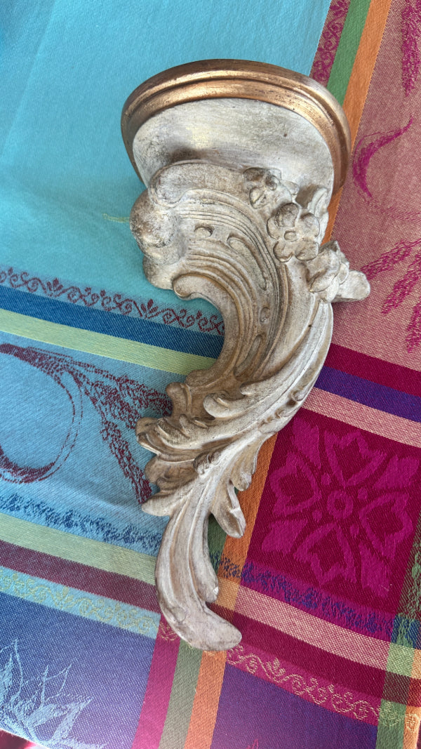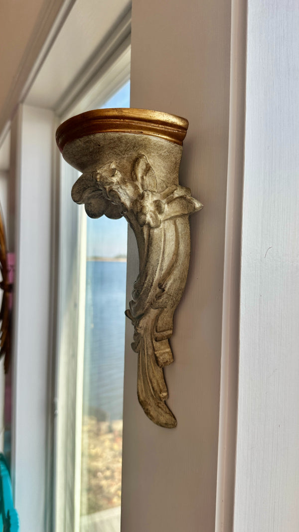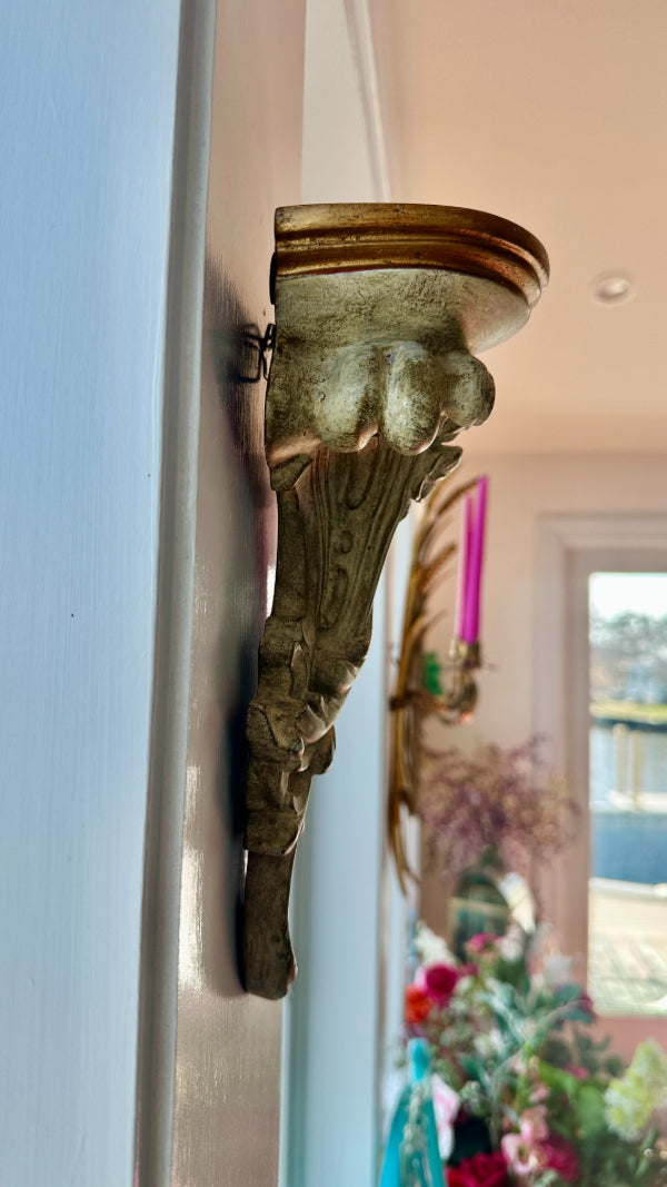 Add a touch of timeless elegance to your home with this Vintage Wall Shelf in classic Italian Style. Featuring intricate detailing and a beautifully aged finish, this piece showcases the craftsmanship and sophistication associated with traditional Italian design. Its versatile structure makes it perfect for displaying decorative items, books, or small plants, while its refined aesthetic complements both vintage and contemporary décor. Whether used in a living room, hallway, or bedroom, this Italian-style wall shelf effortlessly blends functionality with artistry, making it a standout addition to any space.