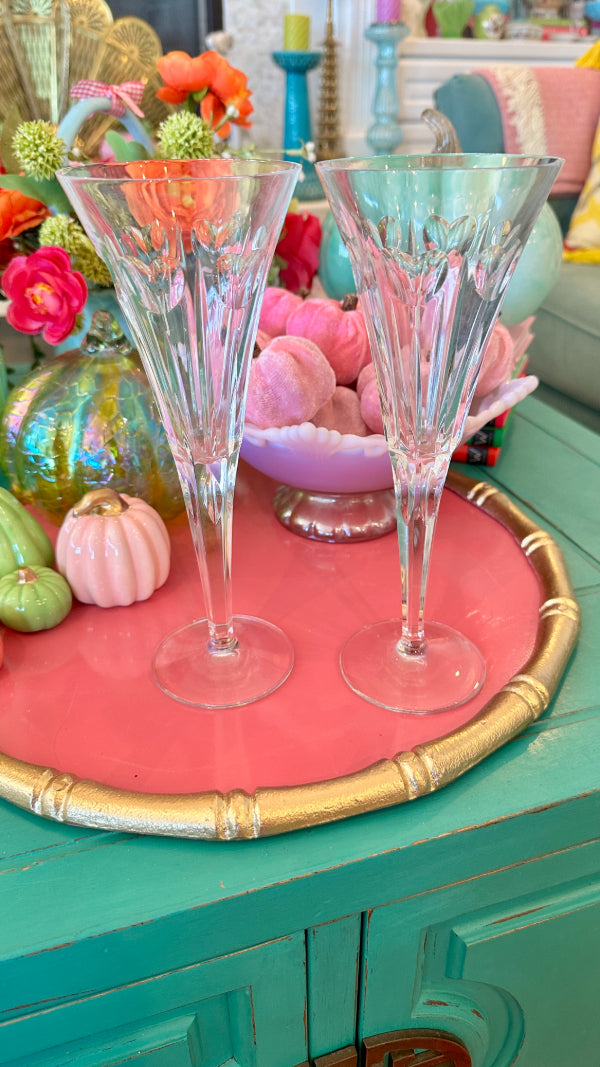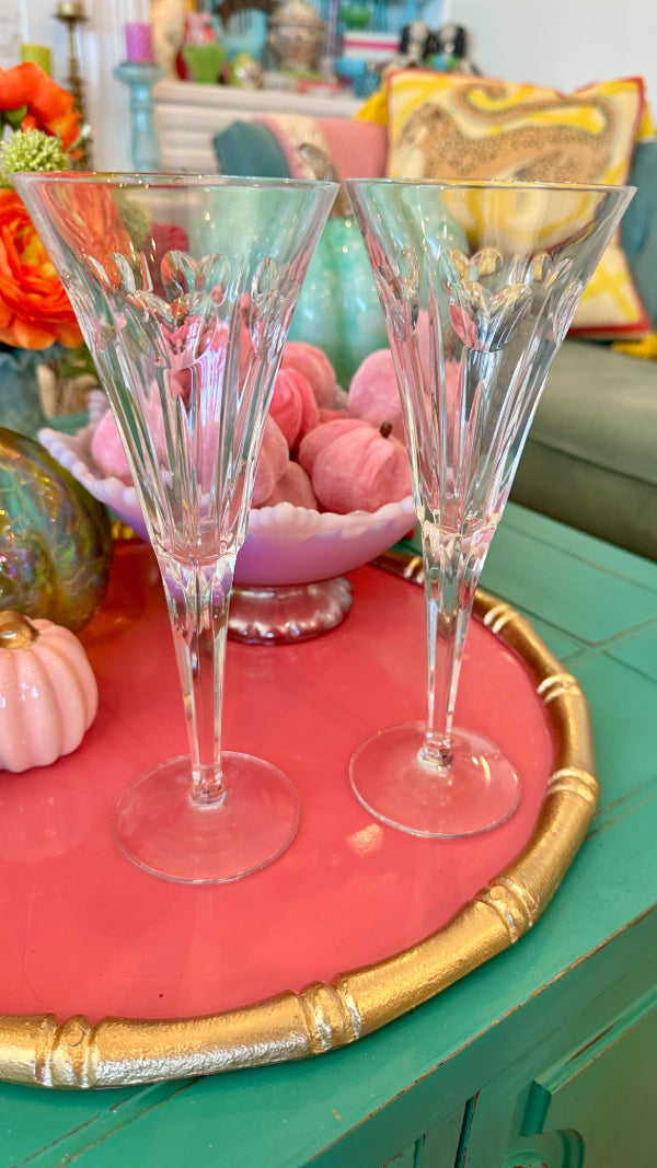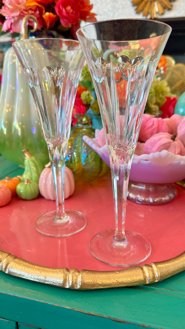 Vintage Champagne Toasting Flutes, Crystal Glass,The Millennium Collection, 2000