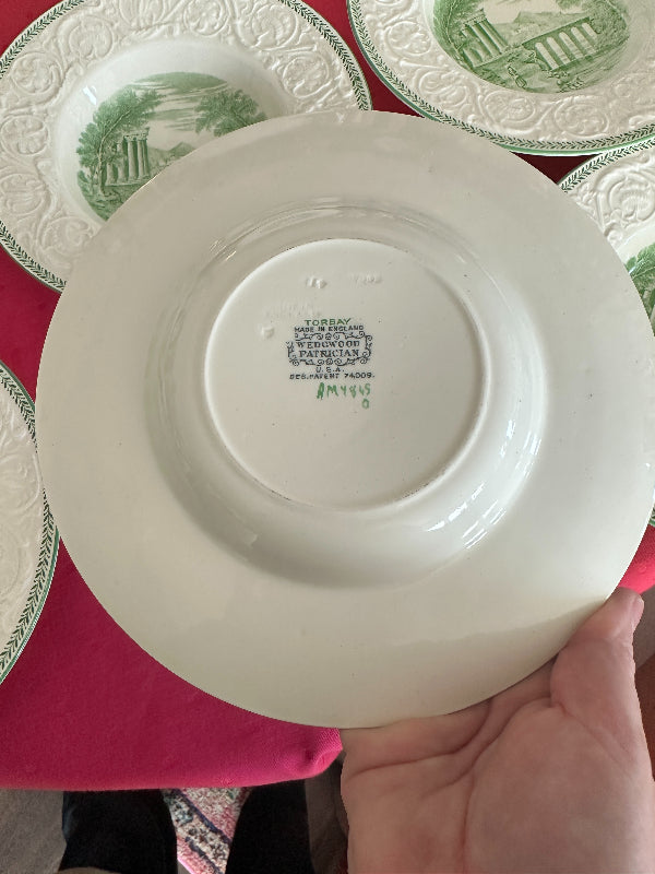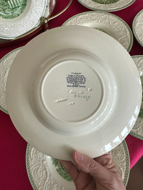Vintage Soup Bowls, Wedgewood Green Soup Torbay Rim Soup Bowls, Laurel Edge, Set of 10