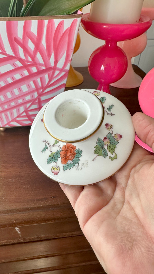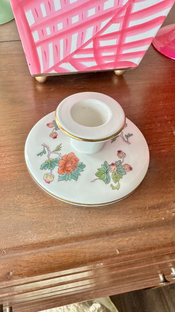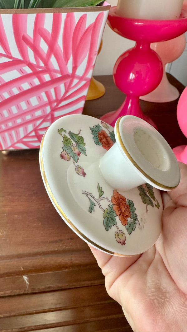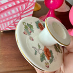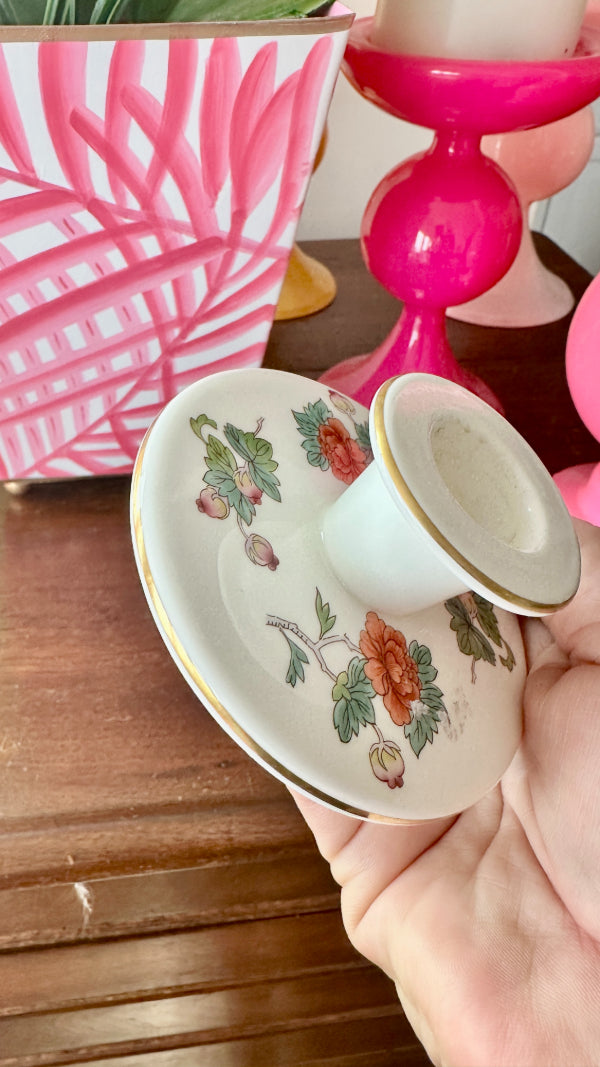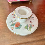 Crafted in England, this Wedgwood Candleholder features the classic Kutani Crane design. Made with high-quality materials, this elegant candleholder adds a touch of sophistication to any room. With the iconic Wedgwood brand and a beautiful floral design, you can trust in its durability and timeless beauty. Perfect for adding ambiance or as a thoughtful gift.