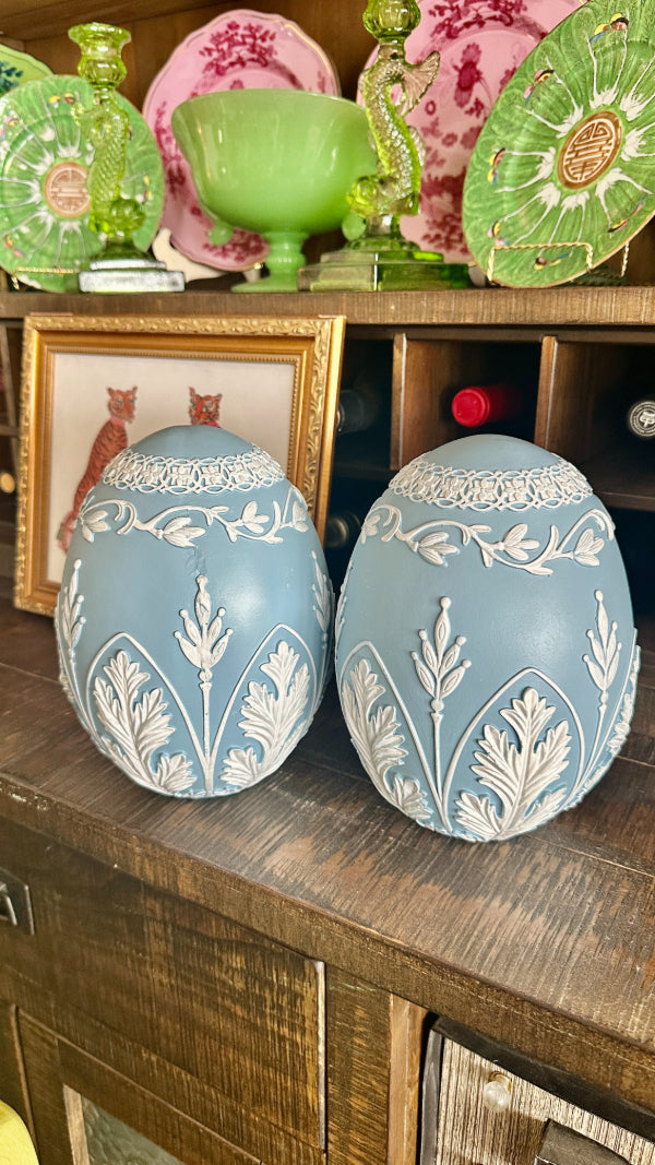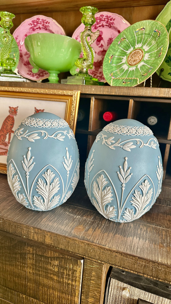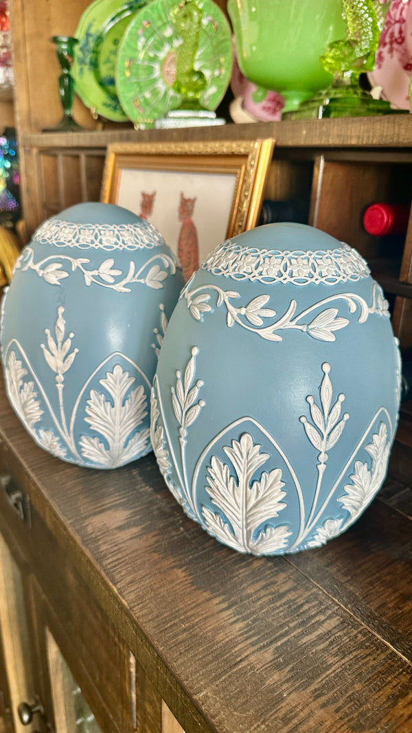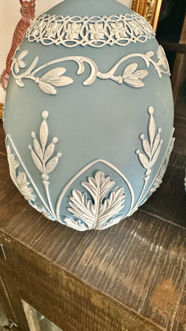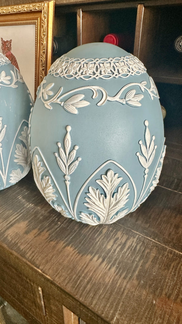 These Wedgwood-style Blue and White Egg Figurines are a beautiful addition to any collection or home decor. With intricate detailing and classic blue-and-white coloring, each figurine exudes elegance and timeless charm. Two are available, each sold separately, allowing you to select the perfect piece for your space. Whether you're a collector or looking for a unique accent, these figurines bring a sophisticated touch to your home.