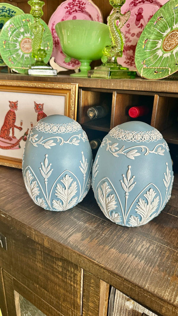 Wedgwood Style Egg Figurines, Blue and White, 2 Available EACH SOLD SEPARATELY