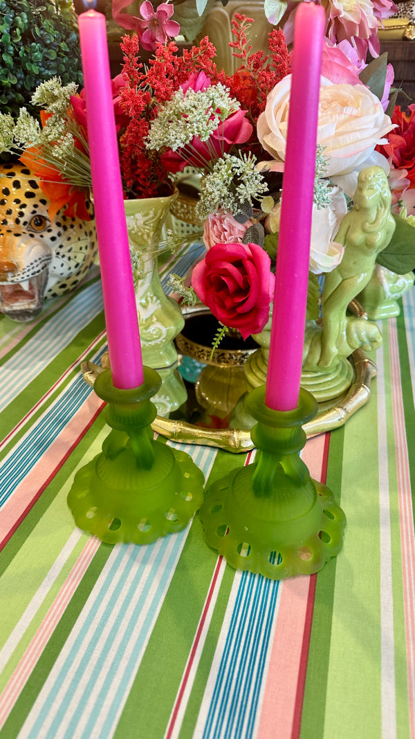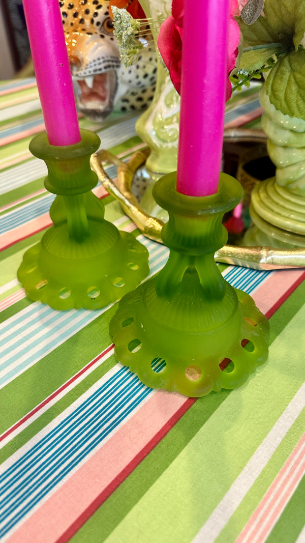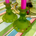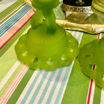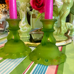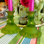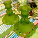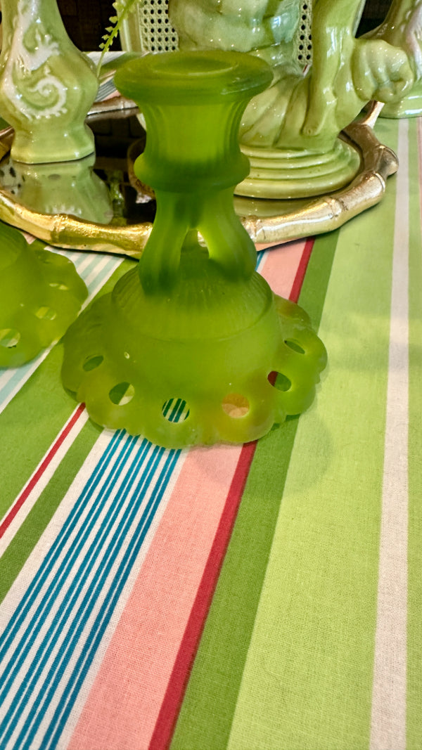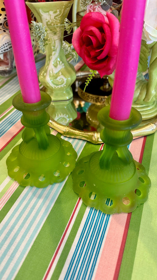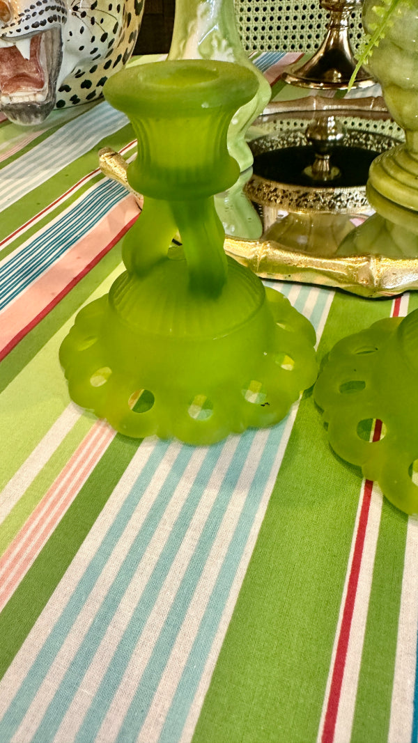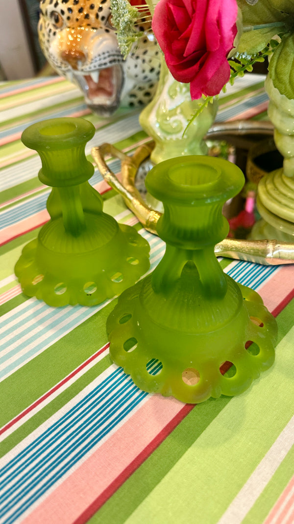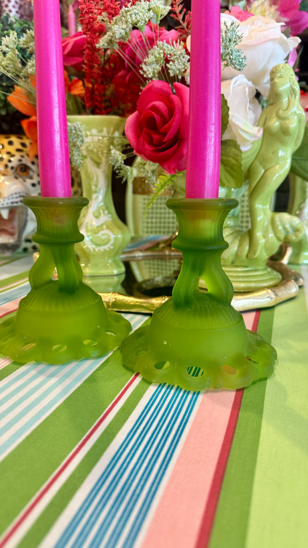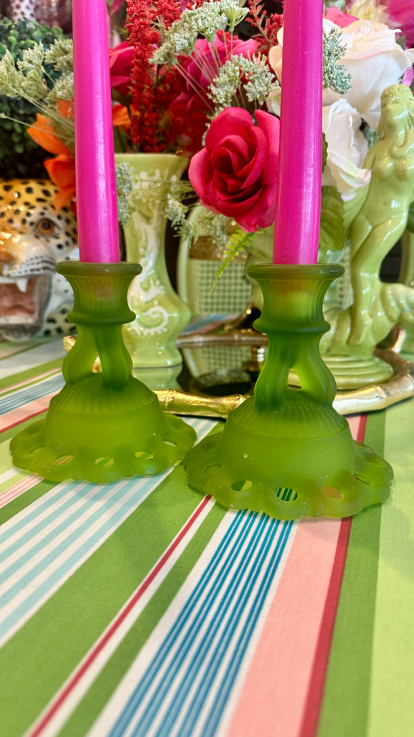 Vintage Westmoreland Satin Glass Candle Holders, Doric Green, Pair