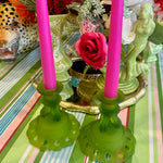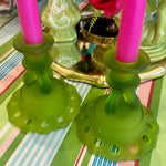 Illuminate your space with vintage sophistication using this pair of Westmoreland Satin Glass candle holders in the elegant Doric Green color. Crafted with Westmoreland’s renowned attention to detail, these candle holders feature a soft satin finish that diffuses light beautifully, creating a gentle, romantic glow. The Doric-inspired design adds a touch of classical elegance, while the rich green hue brings warmth and character to any table or mantel display. Perfect for collectors of vintage Westmoreland glass or anyone looking to add a refined accent to their décor.