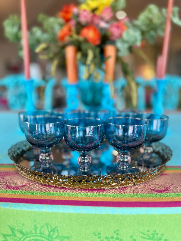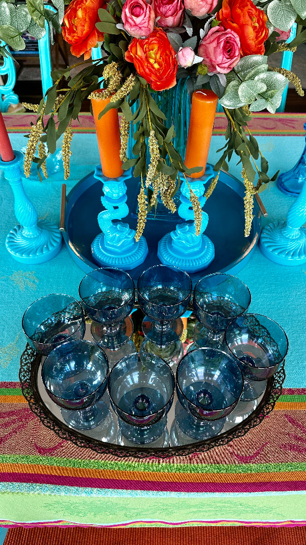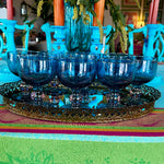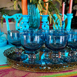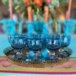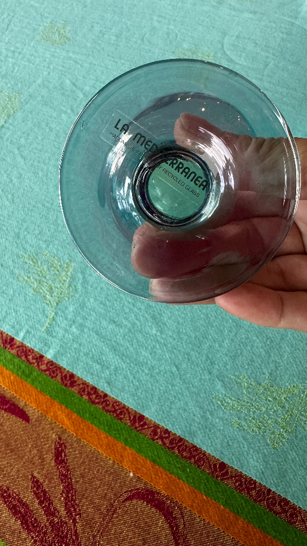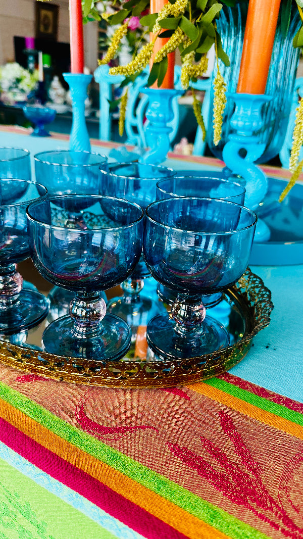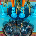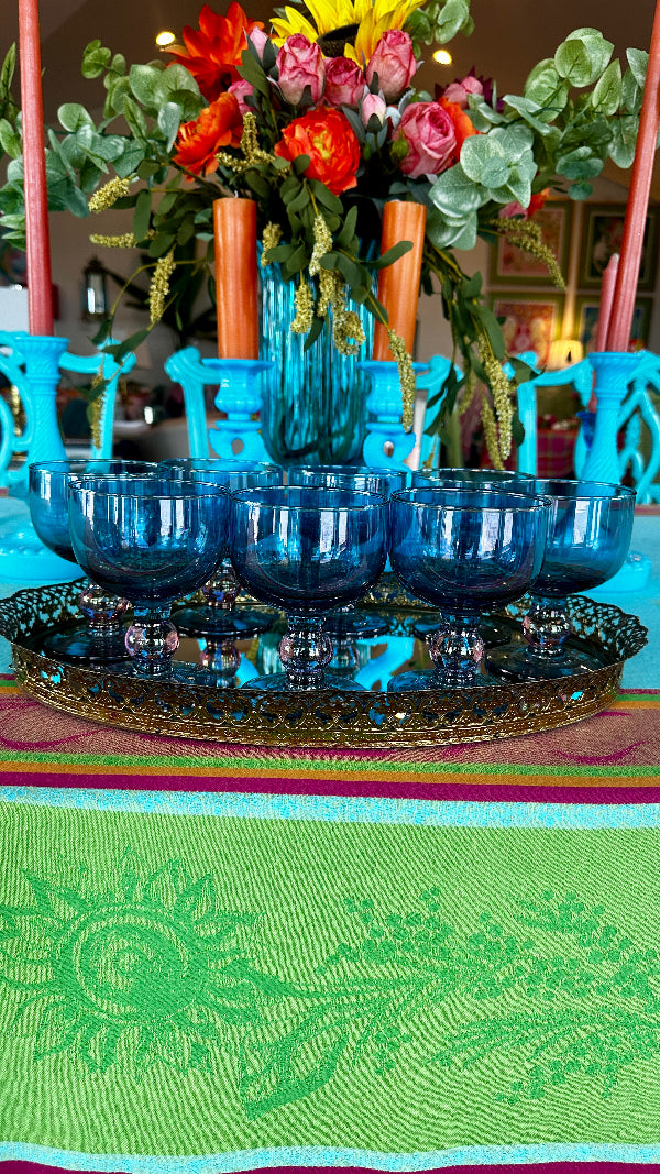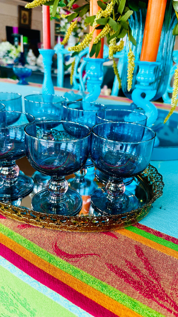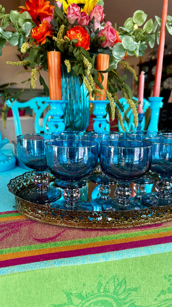 Experience the charm of handcrafted elegance with Hand Blown Glasses, made in Spain. This set of 8 features La Mediterranea recycled glass, showcasing a stunning luster shine in blues, purples, and pinks. Perfect for any occasion, these eco-friendly glasses add a touch of vibrant sophistication to your table. Each piece is uniquely handmade, offering both beauty and sustainability. Never used, Stickers still attached. These are much more beautiful in person! The ball on the stem is a light pink and the lustre is stunning.